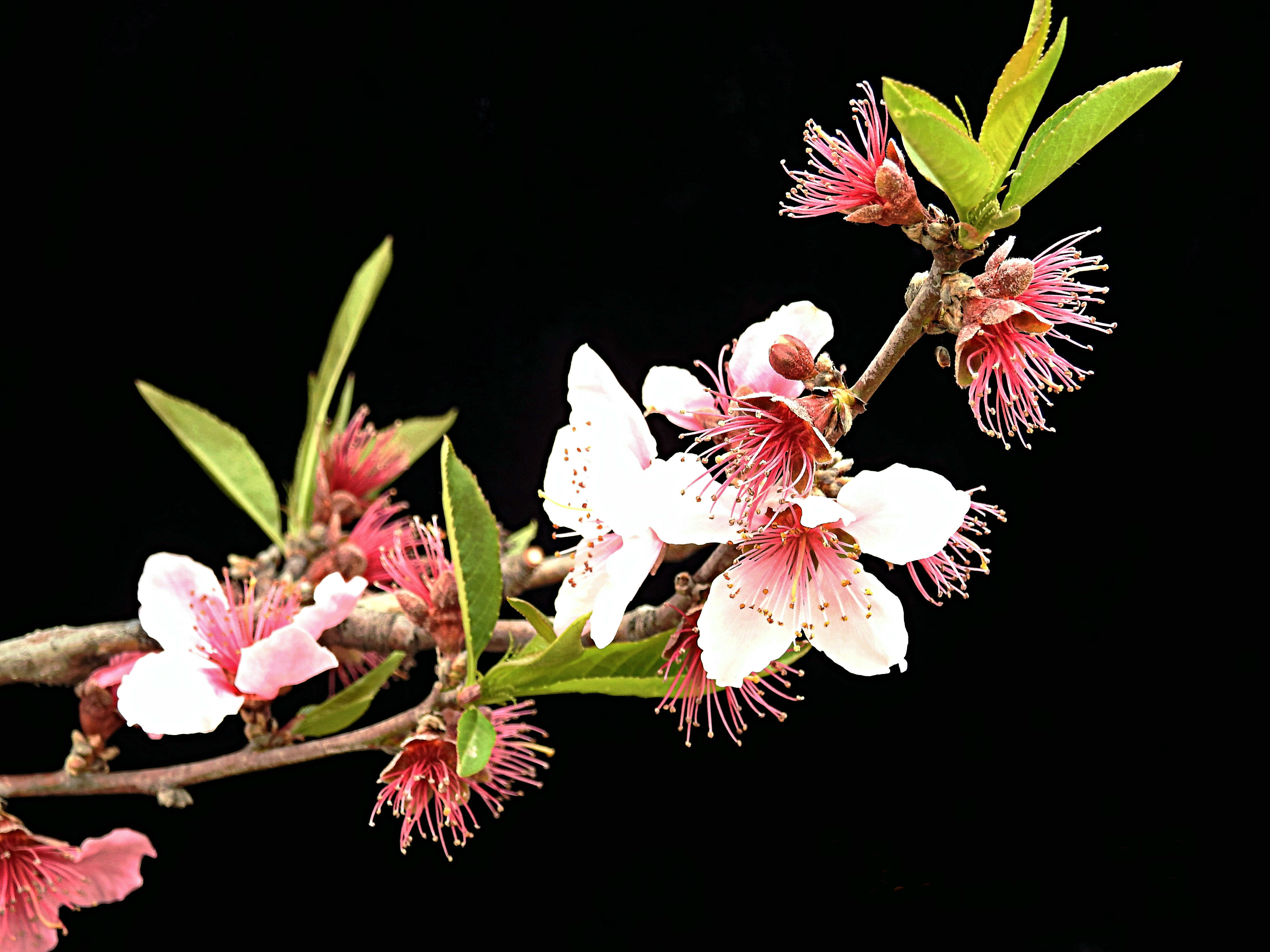 3、垂枝桃:枝条下垂,花白至红色。